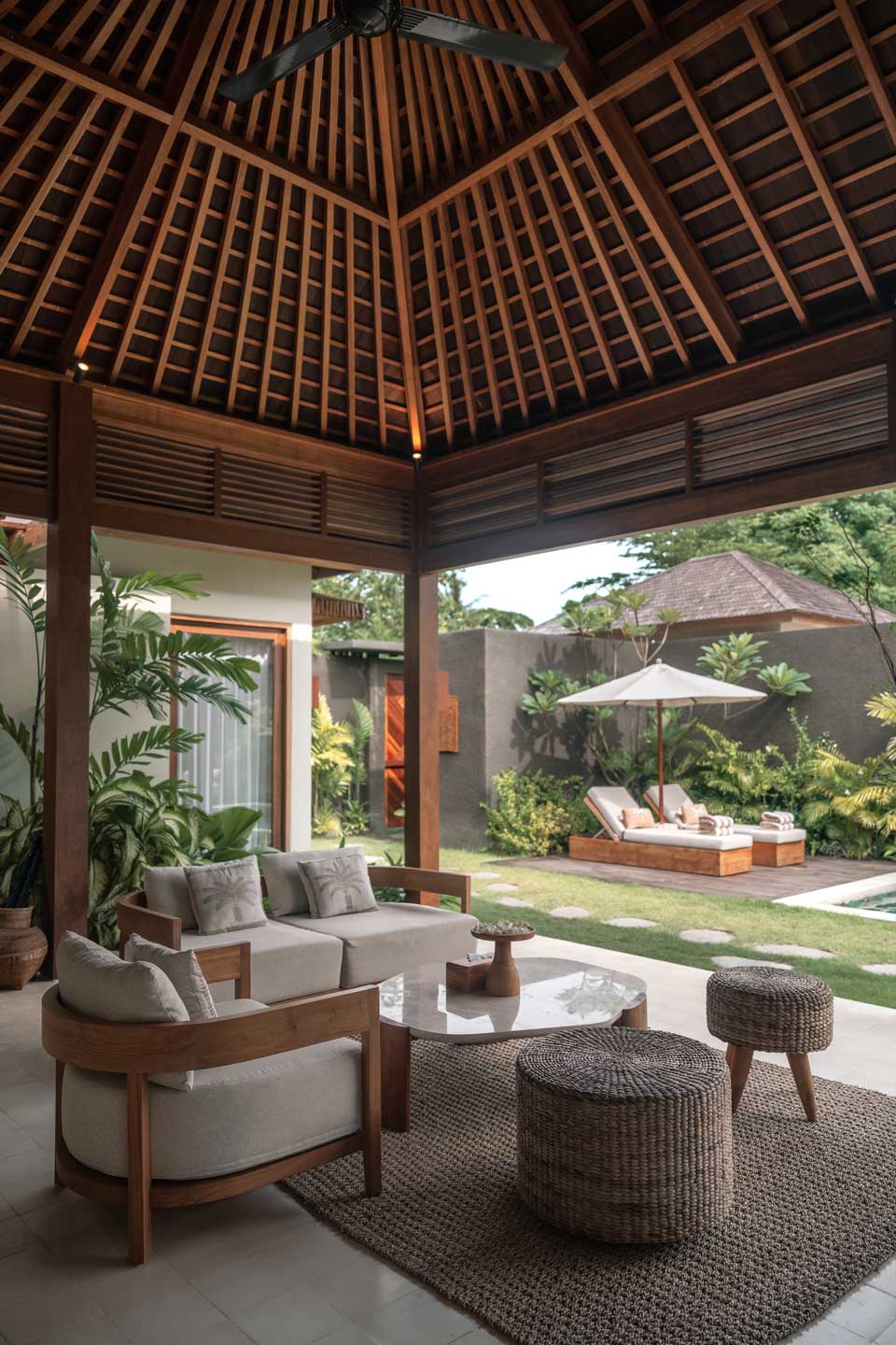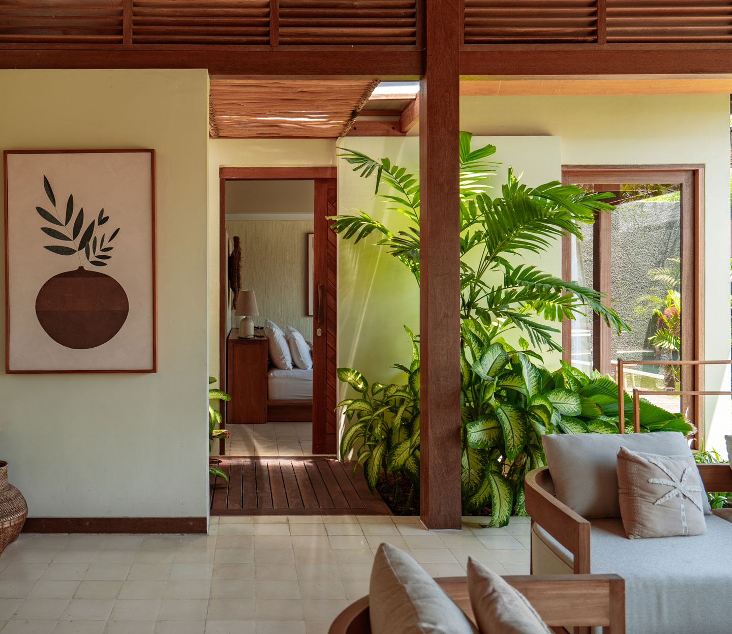 Discover true tropical luxury with our Two Bedroom Pool Villa, featuring an expansive open-plan living and dining area, along with a kitchen, connecting two spacious en-suite bedrooms. Enjoy a private pool, sunbathing deck, and outdoor sitting area surrounded by lush tropical flora, creating the perfect private island oasis. Ideal for families or groups seeking refined island luxury.